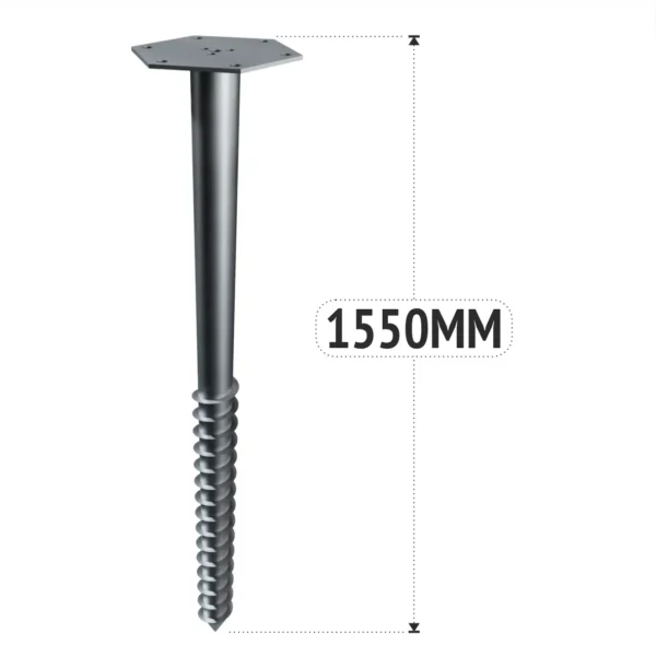 Ce modèle de fondation à vis convient aux grandes structures. Le diamètre du tuyau de 76 mm et l’épaisseur du métal de 3,5 mm peuvent supporter des charges allant jusqu’à 3 000 kg. En fonction des conditions du sol et en accord avec les architectes, ces pieux vissés peuvent être utilisés pour la construction de maisons à ossature bois.